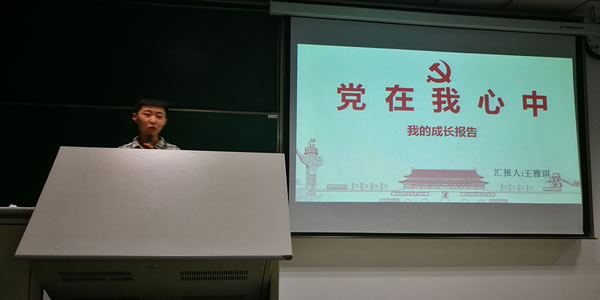 报告会上,14名党员发展对象结合自身思想觉悟、学习表现、社会实践,集体生活等方面的表现和体会做了汇报,充分展示了他们被列为建党积极分子以来的点滴积累和成长历练,给同伴们带来了一场精彩的励志报告。学生党支部以“同伴教育”为依托,通过考察党员发展对象成长报告会的形式,发挥学生发展对象的榜样引领和同伴教育作用,鼓舞和激励同伴们向优秀学习,向组织靠拢。