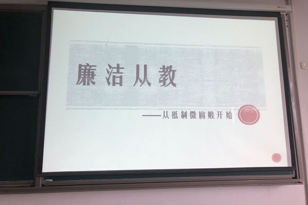 为深入贯彻落实全面从严治党要求,推进学院党风廉政建设,11月4日下午13:30,机电学院在2C401组织全体教师开展“廉洁从教,从抵制微腐败开始”专题学习。机电学院党总支书记林洁担任主讲。学习中,林洁通过两段微视频《认清微腐败警示教育》和《微腐败“显形记”》,阐述了“微腐败”的概念、典型特征,结合案例讲述了微腐败的主要表现及危害,并要求全体教师要确保廉洁自律,以德立身、以德治学、以德育人,共同构建廉洁从教的管理氛围。(文:凌琳;审核:林洁)