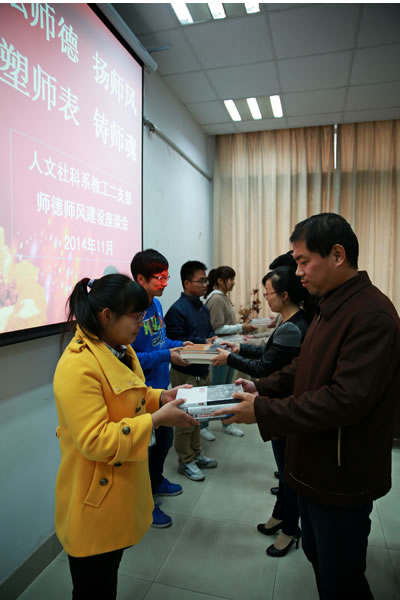 支部发挥具有思政专业的优势,组织党员积极参与学校的各类党建思政活动,在学校的大思政融合中贡献自己的力量。2014年11月,支部党员作为校“风清”宣讲团的成员,走进各个系部弘扬师德。2017年10月党的十九大胜利闭幕之后,支部的6位党员分别走入不同学院、不同部门,为全校师生开展了以十九大精神为主题的宣讲9场,掀起了学习十九大精神的热潮。近年来,支部的胡艳妹、陈学凤、边婧、高蕾等党员为各学院的入党积极分子培训班、新生入学教育、班主任培训等开设讲座,余波为辅导员培训班、党委中心组学习做专题讲座。学校每年的廉政文化月活动,支部党员积极参与,相关成果名列前茅。