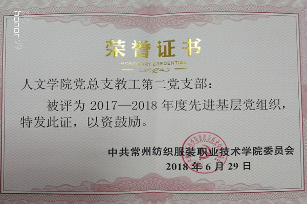 在支部党员的集体努力下,2018年支部被评为学校“先进基层党组织”。