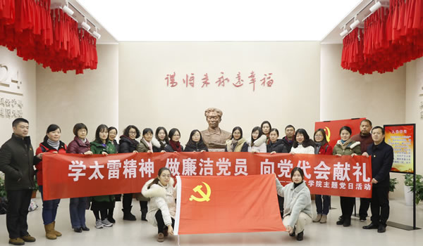 为深入学习贯彻落实党的十九大和习近平总书记系列重要讲话精神,激发党员老师爱国、爱党、爱岗的党性情怀,提升党员老师敬业、精业、乐业的奉献精神,充分发挥党员老师的先锋模范作用,营造风清气正的廉洁文化氛围,向学校第二次党代会献礼,12月12日下午人文学院组织全体党员老师前往张太雷纪念馆开展主题党日教育活动。