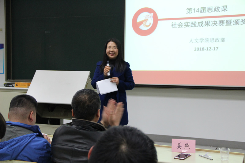 “道不可坐论,德不能空谈。”为带动同学们进一步深入学习贯彻党的十九大精神,切实感受我国改革开放40年所取得的伟大成就,向即将到来的永利官网第二次党代会献礼,12月17日晚18点,第14届思政课社会实践成果大赛决赛在9220教室举行。学工处处长夏斌、质控处处长肖海慧、团委副书记李凯、人文学院院长姜燕及党总支书记胡艳妹担任决赛评委,思政教师及部分学生代表观看了比赛。