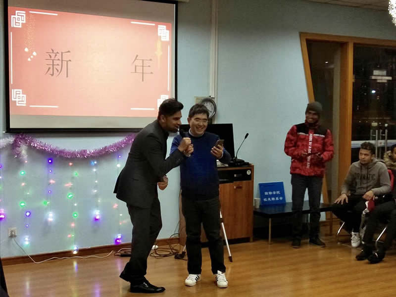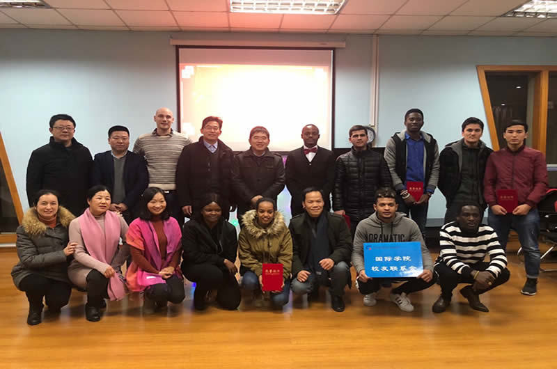 张震宇为留学生送上了真挚的新年祝福,希望他们珍惜学校提供的良好环境,度过美好的大学生活,为构建人类命运共同体、传播中国与世界各国友谊贡献力量。他还向外教代表David Becket表示慰问,感谢全体外籍教师一年来的付出与努力。学工处副处长乔丽娟和团委副书记李凯为国际学院的优秀学生颁发了荣誉证书。