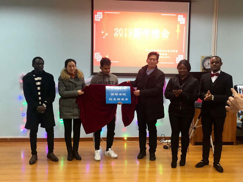 12月27日晚,永利官网国际学院在国际学生活动中心5414隆重举行2019迎新年联谊会暨校友联系会。学校副院长张震宇、学工处副处长乔丽娟、团委副书记李凯、国际学院副院长杨善江、韩瑞以及国际学院全体留学生、任课老师代表、外教、留学生校友代表欢聚一堂,喜迎新年。