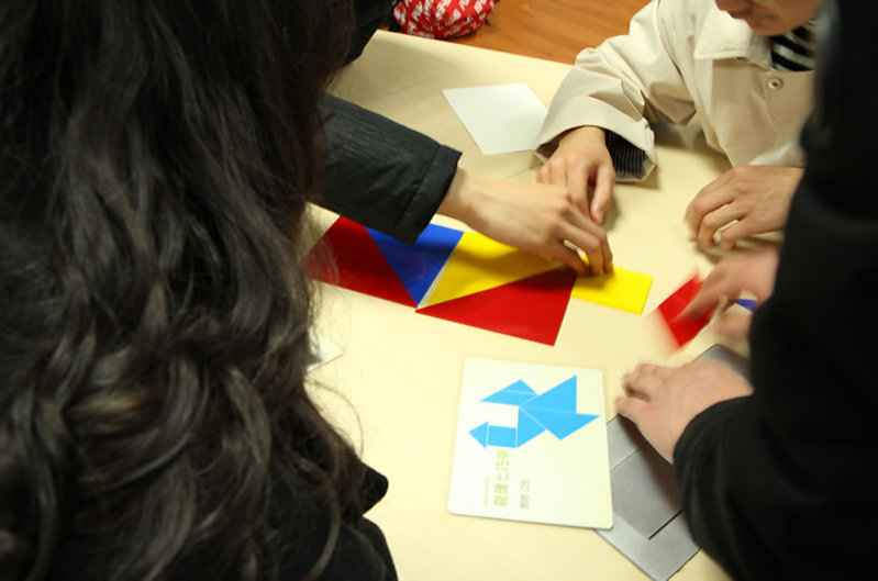 在第一次活动的基础上,营员们彼此相识相知。随后借助“多彩七巧板”活动,进一步培养了团队成员主动沟通的意识,体验了建立有效沟通的渠道和方法;强调了团队的信息与资源共享,通过加强资源的合理配置提高整体价值;体会了合作的重要性,合理处理竞争关系,实现良性循环。