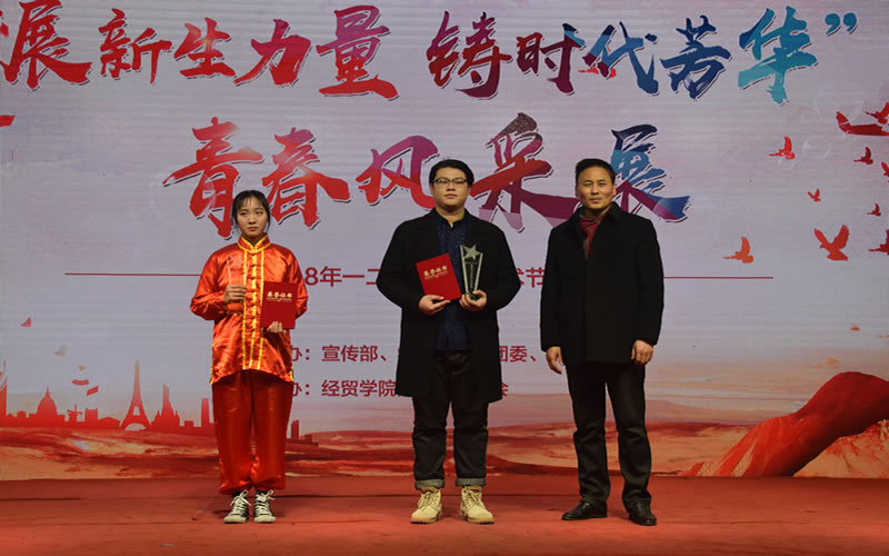 1月4日,由经贸学院承办的“展新生力量铸时代芳华”青春风采展在大学生活动中心顺利举行,本次活动也标志着由永利官网宣传部、学工部、校团委联合各二级学院开展的“弘扬爱国情,筑梦新时代”一二·九校园文化艺术节顺利闭幕。学校副院长张震宇,宣传部部长李洁琦、学工部部长夏斌,校团委副书记李凯、各二级学院党总支书记、副书记、校团委全体老师、各二级学院团委书记、负责人和400余位学生代表参加活动。