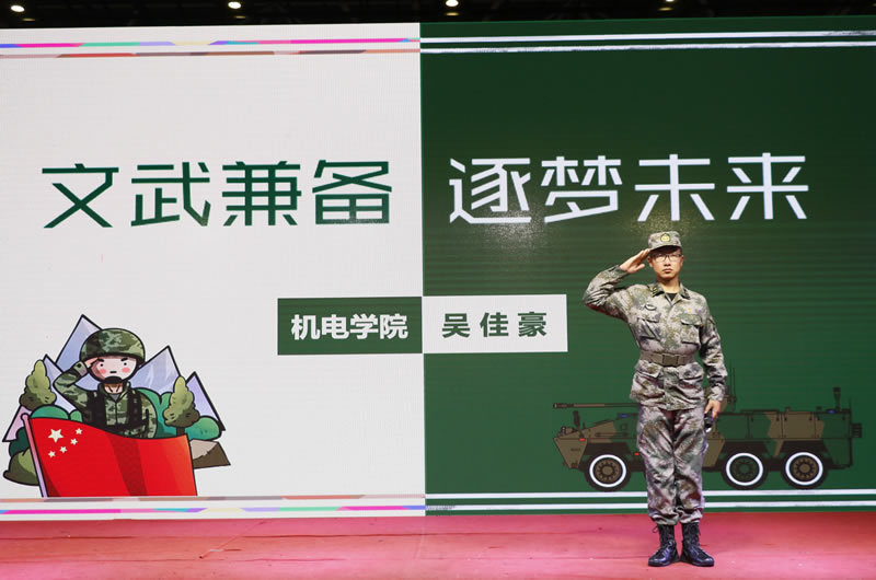 模具1731班吴佳豪,考上大学后因为责任从军入伍,经历了两年的锤炼,带着军营的坚守与热情,回到大学校园,凭借对工作、对集体的热爱,对自我严格要求,使其脱颖而出,成为机电学院学生会主席,工作勤勤恳恳,学习成绩常年第一,所有学科分数均超90分,以追梦人的姿态砥砺前行。