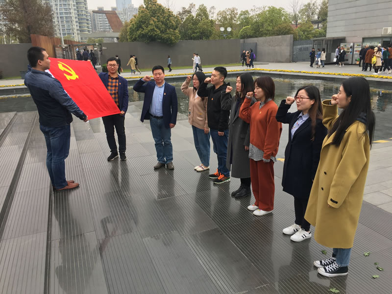 大家观看了馆内大量的介绍文字、图片、视频和实物资料,深切哀悼南京大屠杀死难者和所有在日本帝国主义侵华战争期间惨遭日本侵略者杀戮的死难同胞。随后,在和平广场纪念碑处,在李凯的带领下全体党员面向党旗,重温誓词,庄严宣誓。