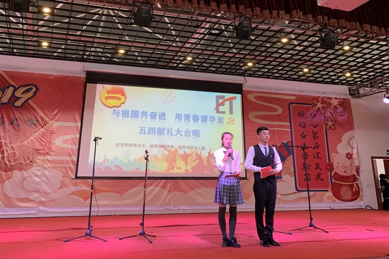 今年是“五四”运动100周年,也是新中国成立70周年。4月24日下午,经贸学院在大学生活动中心开展“与祖国共奋进 用青春谱华章”五四献礼大合唱活动。学校党委宣传部部长夏斌、学工部部长李洁琦、团委副书记李凯、经贸学院党总支书记糜红缨、经贸学院关工委老师应邀出席本次活动。作为一次特殊的党日活动,经贸学院学工支部、教工支部的党员老师也参加了本次活动。