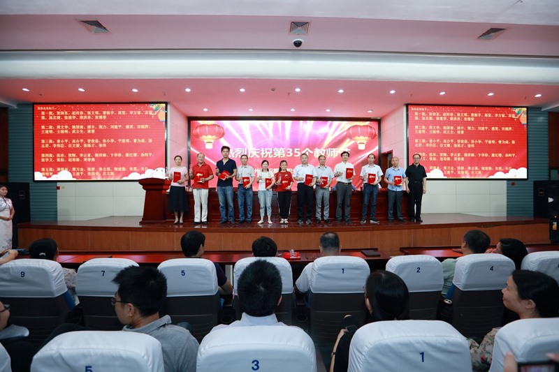 张震宇副院长宣读了《关于为学校工作30周年及以上人员颁发荣誉证书的决定》,邓凯副院长为69位在校工作满30周年以上的教职工颁发了荣誉证书和纪念奖杯。
