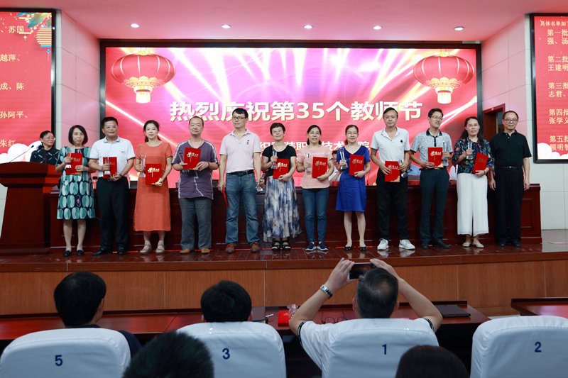 9月10日下午,永利官网在图文报告厅一楼隆重召开2019年教师节表彰大会,热烈庆祝第35个教师节,表彰在教书育人工作中取得成绩的优秀个人和团体。校领导蒋心亚、洪霄、邓凯、赵玲珍、张文明、张震宇出席会议并为获奖代表颁奖。赵玲珍副院长主持会议。