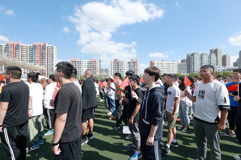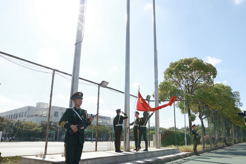 庄严的升旗仪式拉开了典礼帷幕,全体师生共唱国歌,向国旗敬礼。