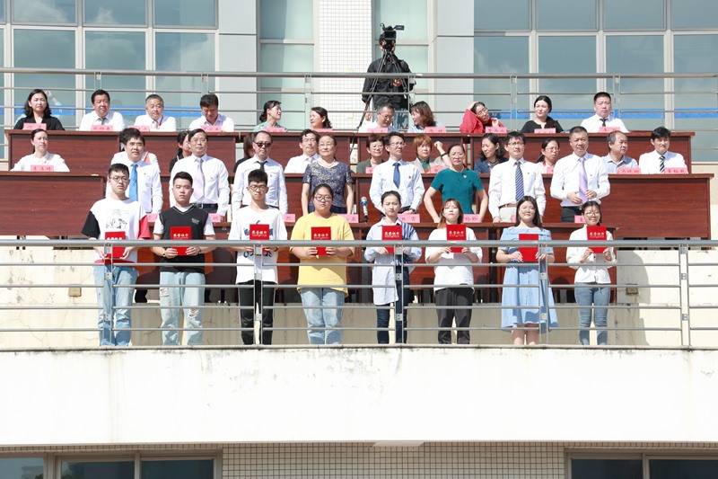 副院长邓凯宣读了《关于2019年新生奖学金获奖人员的表彰决定》,全体校领导为新生奖学金获奖学生代表颁奖。