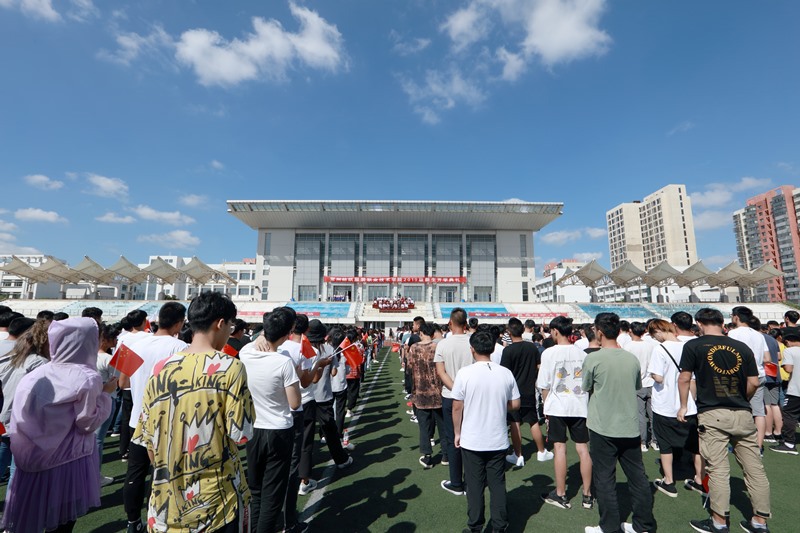 最后,她激励全体新生用深厚的家国情怀,以坚忍不拔的毅力,百折不挠的干劲,一往无前的激情,在新时代的浪潮中奋勇搏击,在新时代的舞台上施展抱负,以梦为马,不负韶华,努力实现大德铸魂、公德润人的臻美境界。