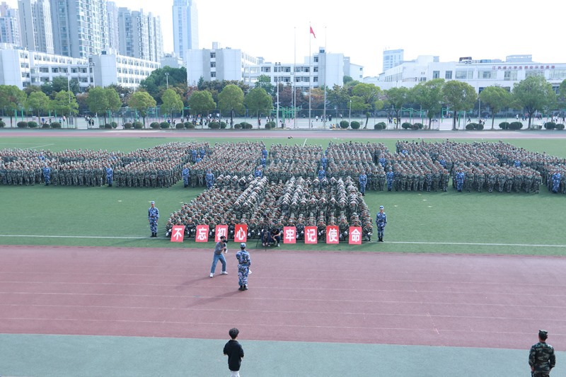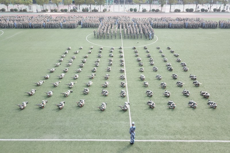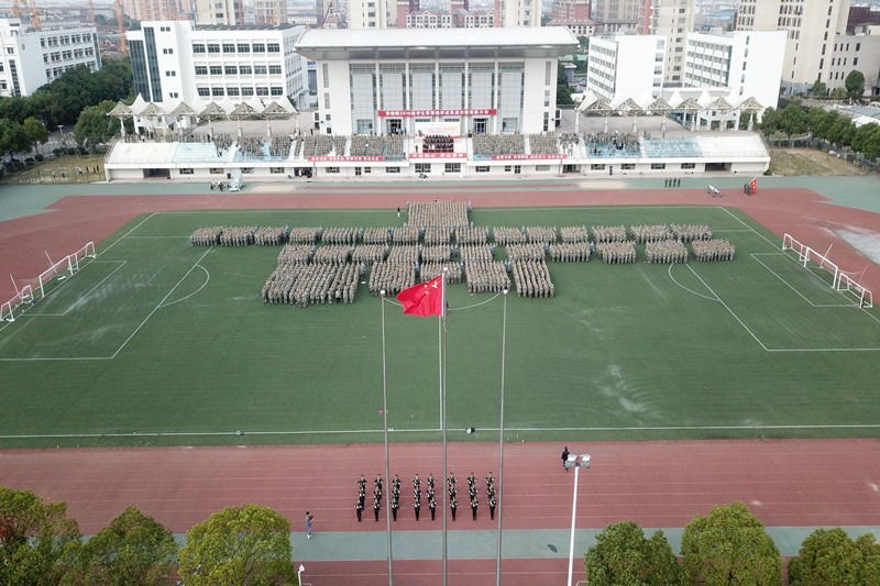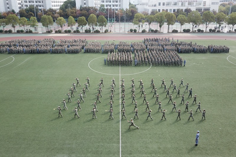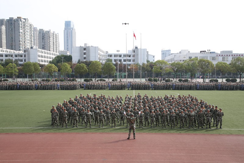 庄严的升国旗、奏唱国歌仪式拉开了军事教学成果展示的序幕。新中国成立70周年主题方阵利用队形变换呈现出“中国”、“初心”、“使命”字样,用青春向祖国深情告白,献礼新中国70华诞。标兵就位后,军训旅31个队列方阵,在校旗、军训旅旗的引领下,伴着铿锵的旋律,迈着整齐的步伐依次通过主席台,进行分列式表演,“不忘初心、牢记使命”和秉承校训的口号响彻田径场,坚毅的神态,嘹亮的口号展现出全体学生昂扬向上的饱满士气和良好精神风貌。随后,擒敌拳方阵、旗语方阵、武术方阵、战术方阵、合唱方阵进行了精彩的军事教学成果展示。