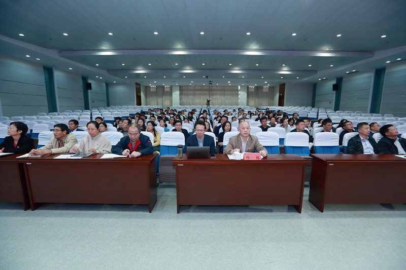 根据“不忘初心、牢记使命”主题教育工作部署,学校党委领导班子成员深入学习、广泛调研、检视问题,守初心、担使命、找差距、抓落实,带领全校师生深入分析、走深落实。10月30日,永利官网开展校领导集中讲专题党课活动,党委书记蒋心亚、院长洪霄以及党委班子成员在所在支部、所联系二级学院为党员们上了一堂堂精彩生动的党课。他们讲学习体会,讲差距不足,讲整改措施,讲对初心使命的感悟,全校党员300余人参加党课学习。省委主题教育第十一指导组杨格同志莅临指导,听取了党委书记蒋心亚同志《初心如磐 使命在肩 担当有为》和院长洪霄同志《不忘初心勇于担当 立德树人》专题党课。