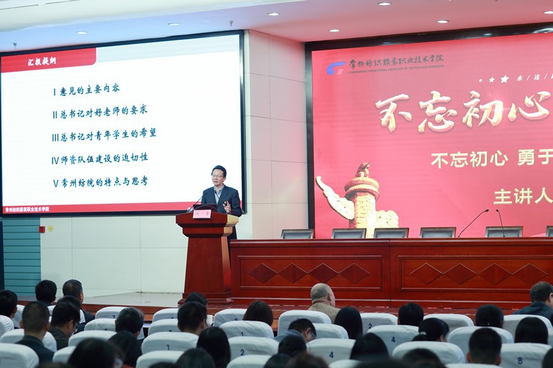党委书记蒋心亚,党委副书记、院长洪霄为机关一支部、四支部、六支部、服装学院党总支、经贸学院党总支全体党员及中层党员干部讲授了专题党课。