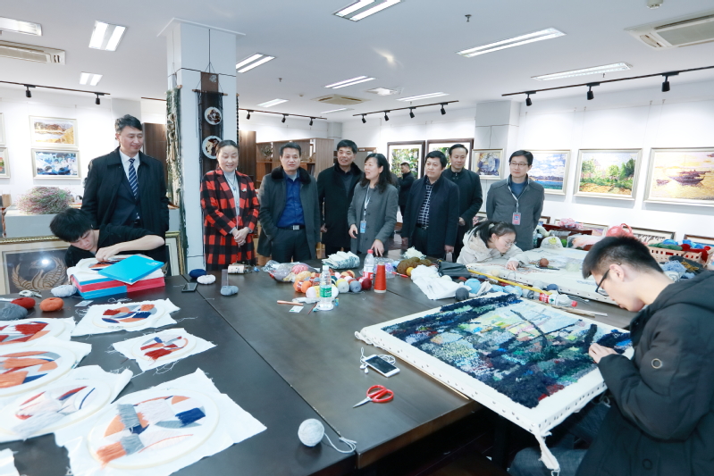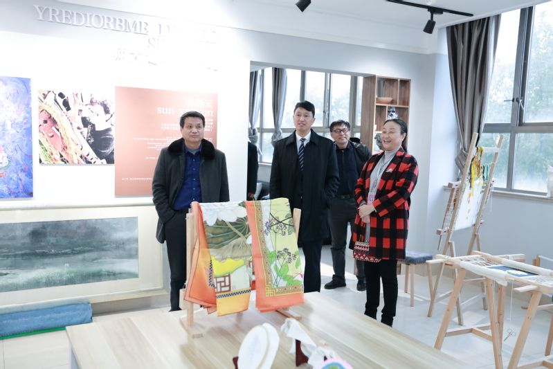 调研期间,邵从清、瞿才新一行首先参观了永利官网文化展示中心,先后考察了学校校史馆、面料陈列馆、服饰文化馆(含京剧馆)、服饰品工作室、皮具设计工作室、时尚礼品设计工作室、纤维艺术工作室、非遗馆、张学义艺术工作室等场馆;结合各场馆及工作室建设,蒋心亚向邵从清、瞿才新一行介绍了永利官网的办学情况、办学特色、人才培养、创新创业、校企合作与社会服务等情况。
