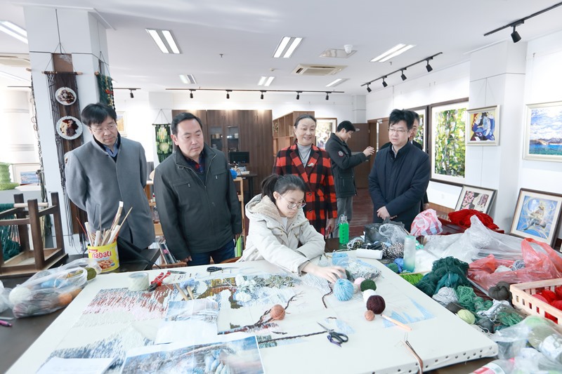 调研期间,房汉廷一行参观了永利官网文化展示中心,先后考察了学校校史馆、面料陈列馆、服饰文化馆、服饰品工作室、时尚礼品设计工作室、动漫艺术馆、非遗大师馆、张学义艺术工作室等场馆。参观过程中蒋心亚向房汉廷一行介绍了永利官网的专业特色、人才培养、创新创业、校企合作与社会服务等情况。房汉廷对永利官网文化展示中心建设给予高度评价,并对学校坚持“创意引领、生态纺织、服装智造”的专业发展,推动产教科融合,培养“匠·艺”人才等特色发展表示赞赏。双方表示将进一步加强合作,共谋事业发展。