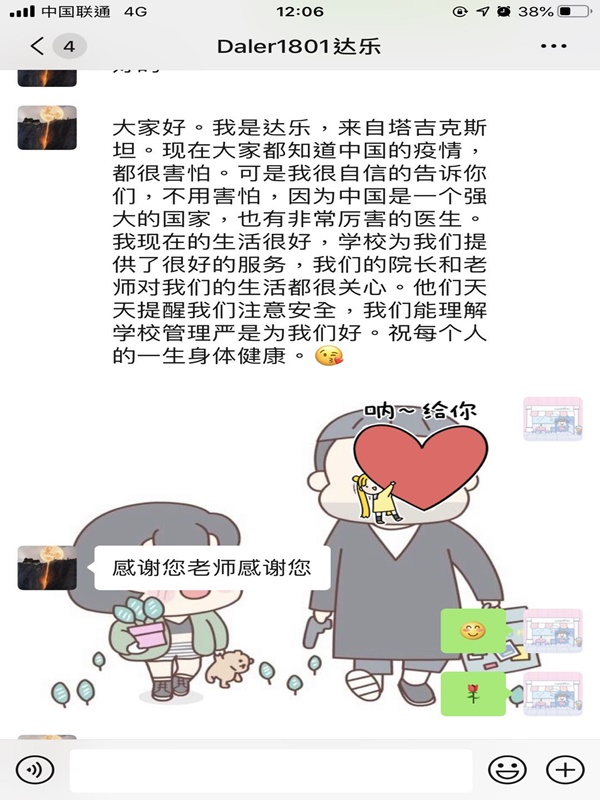 疫情期间,国际学院来华国际学生部分在校,学生的健康、安全与防护事关内外,是全校抗击疫情的重点关注领域。关键时刻,国际学院两位负责同志前置一线,轮流到校值守,疏通管理流程,明确岗位职责,积极协调相关部门,确保学生生活健康安全无虞;学院在常全体教师也志愿报名加入值班行列,形成了师生携手抗疫的良好氛围。