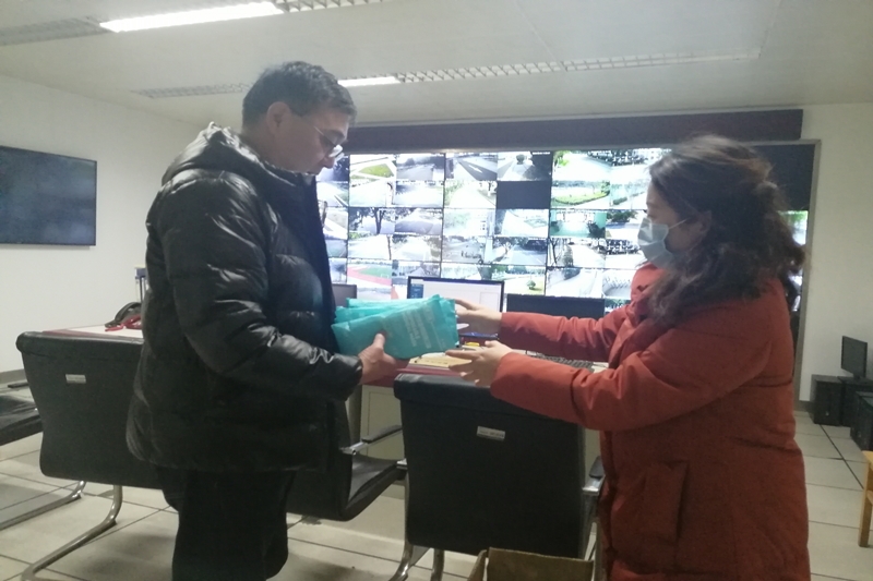 侯艳洪为学校值班人员配送防疫物资