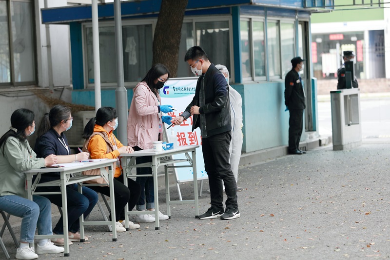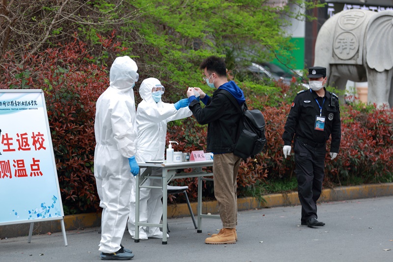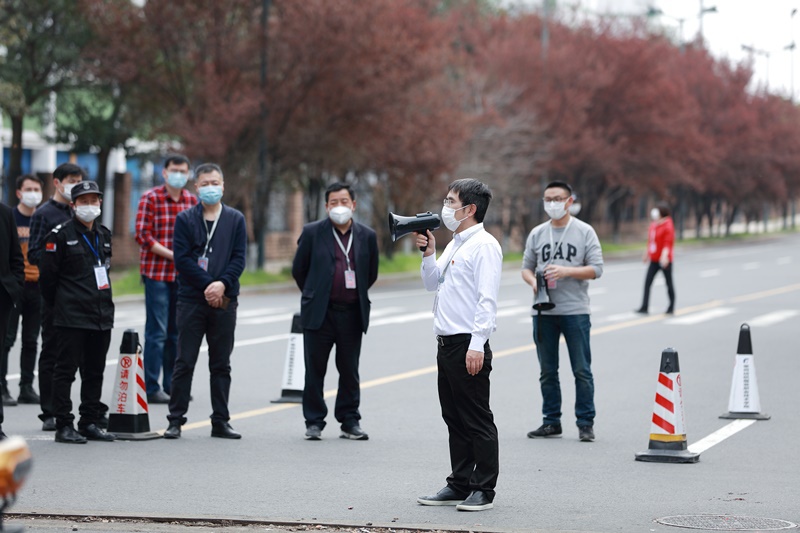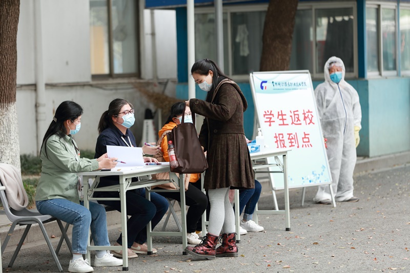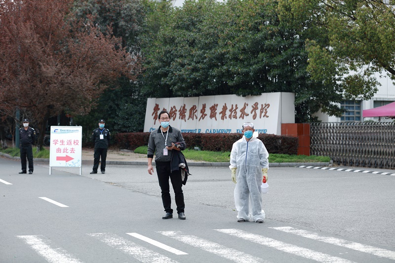 演练在学校樱花路北门及樱花路、东门及35栋门口、宿舍门岗等学生返校真实场景中进行,严格按照疫情防控要求模拟了学生返校时的体温测试、进校及人员转运、二级学院报到、公寓入住、体温异常学生处理的相关流程。副院长张震宇宣布演练开始,现场各部门协同配合,顺利完成了家长开车陪同正常报到、家长陪同需要遣返、学生单独返校需要进一步诊断、学生单独返校正常报到、消杀演练等五种情况演练。演练全程衔接有序,各部门职责明确、行动快捷、措施得当。