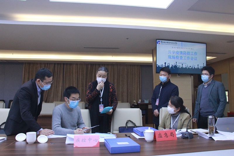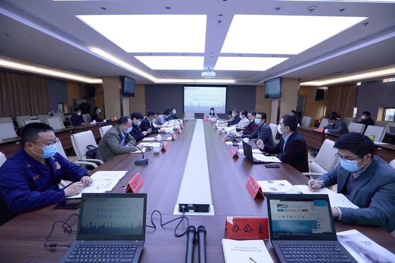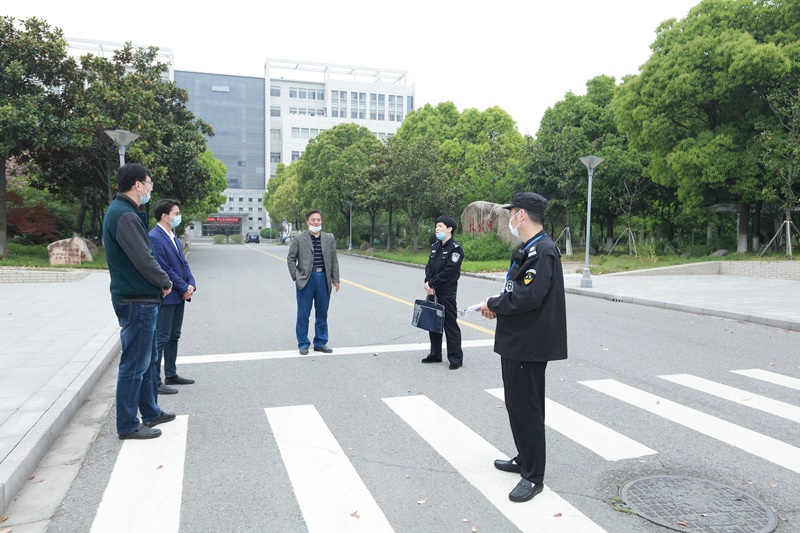 4月17日,常州科教城高校疫情联防联控工作组到永利官网开展开学疫情防控工作现场检查工作。科教城管委会副主任庄三舵及科教城管委会、武进区公安局、卫健局、市监局、应急局、消防大队等部门人员和专家来校指导。永利官网党委书记蒋心亚、院长洪霄、副院长赵玲珍、张震宇及相关职能部门负责人陪同检查。