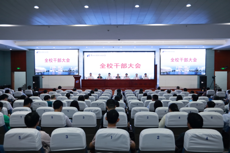 根据学校党委关于学校中层领导班子和领导干部集中换届的安排和部署,7月1日上午,学校在报告厅召开全校干部大会,宣布2020年中层领导班子和领导干部任职情况。学校领导班子成员、全体中层干部(含新提拔)参加会议。会议由党委副书记、纪委书记王顺明主持。