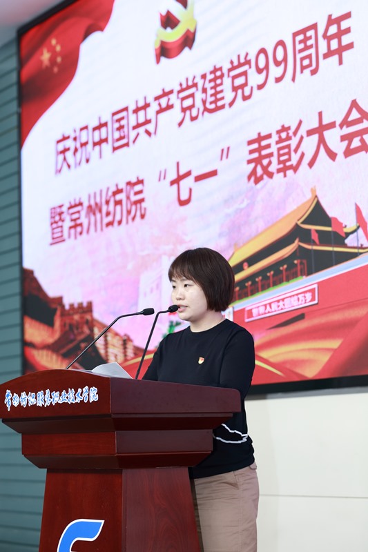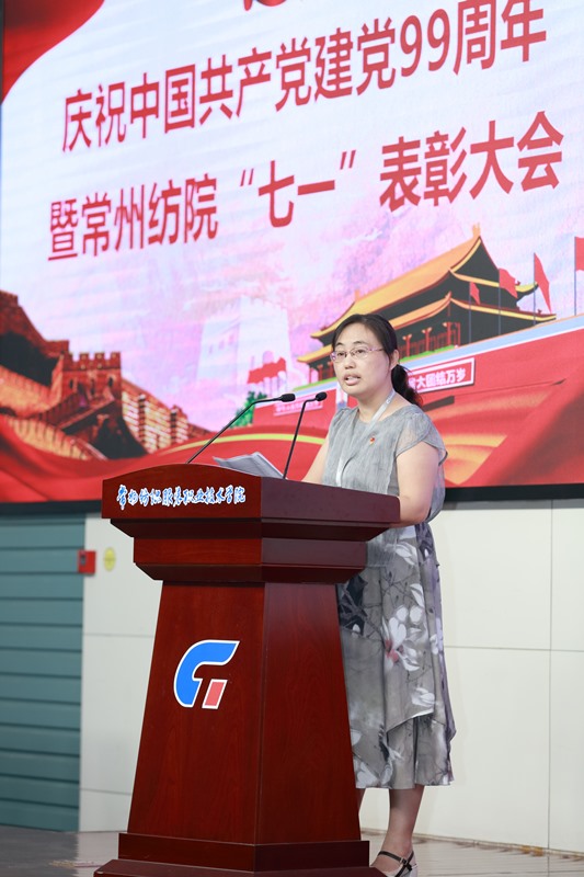 最后党委书记蒋心亚作主题讲话,她回顾了中国共产党走过的99年光辉历程,结合学校改革发展取得的成绩总结四点发展的经验和启示,一是必须坚持党对学校的全面领导;二是必须牢牢把握发展第一要务;三是必须改革创新担当作为求活力;四是必须立党为公带头讲正气。针对学校正面临深化改革、跨越攀升的艰巨任务,对各基层党组织和党员干部提出五点要求和希望。一是服务师生、凝聚人心,充分发挥基层党组织战斗堡垒作用;二是主动担当,大胆作为,充分发挥共产党员先锋模范作用;三是改革创新,立德树人,牢牢掌握意识形态领域的领导权;四是围绕中心,服务大局,持续推进学校改革发展;五是优化机构,科学选人,为事业发展提供坚强组织保障。她指出,每个时代都有每个时代的使命。走好新时代的常纺发展之路,建设更加美好常州纺院,是这一代常纺共产党人和全体教职员工的共同责任。进一步高举习近平新时代中国特色社会主义思想伟大旗帜,不忘初心,牢记使命,立足岗位,振奋精神,主动担当,积极作为,努力把学校各项工作推向新的台阶,共同开创常州纺院高质量发展的新局面。
