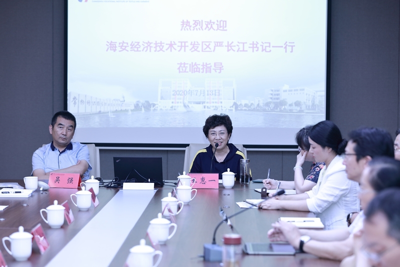 7月13日上午,海安市委常委,海安经济技术开发区党工委常务副书记严长江同志率代表团来永利官网调研交流。常安纺织工业园区的34家企业的负责人及代表同行,永利官网院长洪霄、副院长赵玲珍、张文明及教务处、科研处、继续教育学院、纺织学院相关领导参加了交流活动。