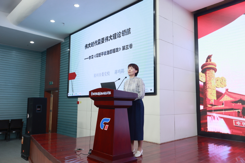 9月17日下午,永利官网在图文报告厅召开党委理论学习中心组(扩大)学习会,专题学习《习近平谈治国理政》(第三卷)。会议特别邀请常州市委党校校委委员、教育长蒋鸣鹛同志作讲座。全校400余名党员干部参加学习。