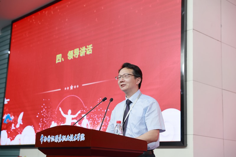 洪霄为专业(群)带头人及培养对象依次颁发了聘书并讲话。洪院长对聘任的专业(群)带头人及培养对象表示祝贺,他强调了专业(群)建设的重要性并提出了三点建议:一是要积极推进“三教”改革,提升人才培养质量;二是要主动对接区域发展,提升专业(群)建设水平;三是要强化带头意识,当好专业建设“火车头”。