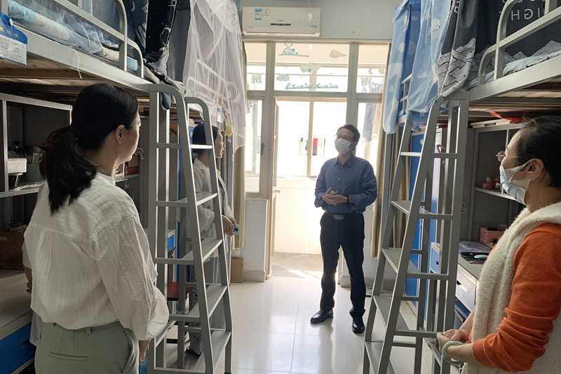 走访期间,洪霄院长还检查了公寓中心和宿舍功能房等,要求公寓中心务必加强宿舍管理,确保学生宿舍安全,并尽可能为学生假期生活提供便利。同时,他要求学工处、后勤保障部和各二级学院一定要增强服务意识,一切以学生为中心,及时了解和解决学生反应的热点难点问题。