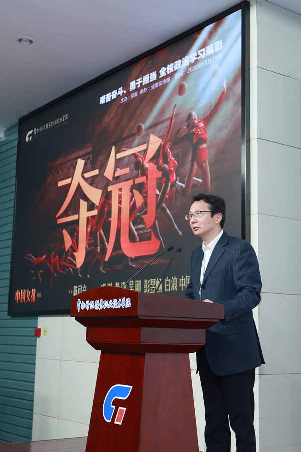 观影前,党委书记吴访升做动员讲话。他指出,这是学校首次将院线正在播放的电影同步引进校园,这也是学校党委结合当前形势,创新政治学习形式,组织的一次思想动员会,也是为学校改革创新发展的一个集结号。他认为,女排精神是中国女子排球队顽强战斗、勇敢拼搏精神的总概括。学校要更好地创新发展,全体教职工也要像中国女排一样,自觉走出舒适区,付出比以前更多的时间和精力,尽快精准地找到当前所遇到的问题和困难的本质,认识自我,认清形势,团结一致,共克时艰,将责任担当与贡献奉献融入行动和实践,以艰苦奋斗的决心和勇气争做常纺发展路上的奋斗者。他号召全体教师进一步学习贯彻习近平新时代中国特色社会主义思想和习近平总书记关于教育的重要论述,提高政治站位,压实政治责任,严肃政治纪律,净化政治生态,以奋发进取的精神状态,形成学校高质量发展的强大合力,推动学校各项工作向纵深发展。