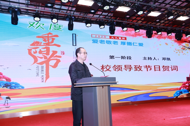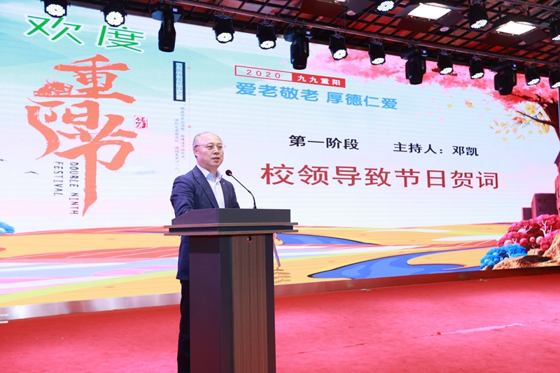 岁岁重阳,今又重阳。在10月25日上午重阳节暨33个老年节到来之际,学校党政办、组织部、宣传部、离退休工作处、工会、团委、退协在学生活动中心联合举办主题为“爱老敬老、厚德仁爱”重阳节纪念活动。学校党委书记吴访升、副院长邓凯以及相关部门负责人与近90位离退休老同志共同出席了庆祝活动,第一阶段由邓凯主持会议。