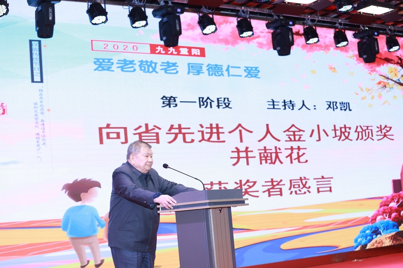 首先,吴访升向老领导金小坡颁发了“全省离退休干部先进个人”荣誉证书、奖牌及奖金,并献上一束鲜花表示由衷的祝贺。老领导金小坡发表了获奖感言:感谢纺院这片热土,这个奖项的获得是四十多位离退休老同志志愿者共同努力的结果,是代表大家领的奖。希望大家继续努力,营造更加温馨的常纺退协之家。