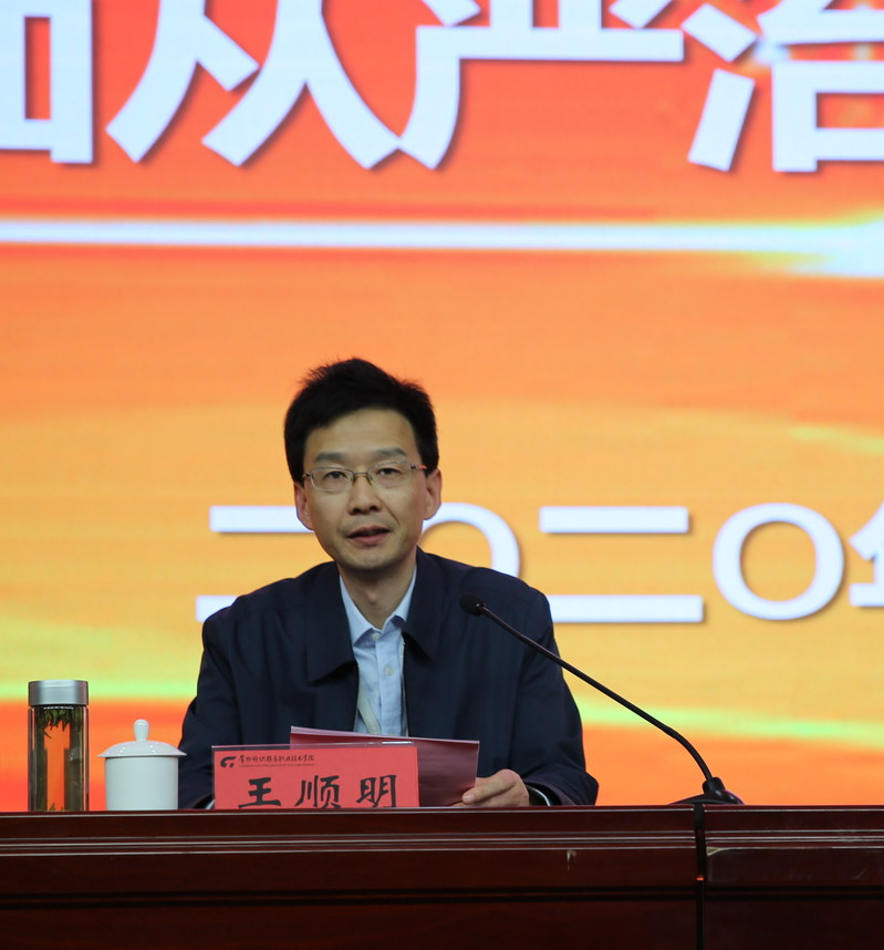 为深入学习贯彻习近平新时代中国特色社会主义思想和党的十九大精神,学习宣传党的十九届五中全会精神,进一步武装思想、提高站位、凝聚共识、推动工作,11月12日下午,2020年学校全面从严治党工作推进会在图文报告厅召开。会议主题是加强党的政治建设,开展党委第三轮巡察工作动员。会议由党委副书记、纪委书记王顺明主持,学校两委委员、中层干部、各党总支委员和党支部书记参加了会议。