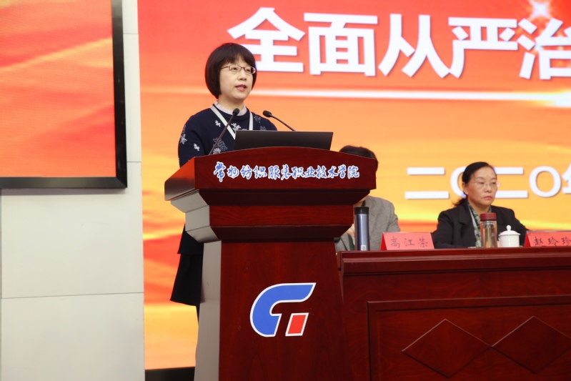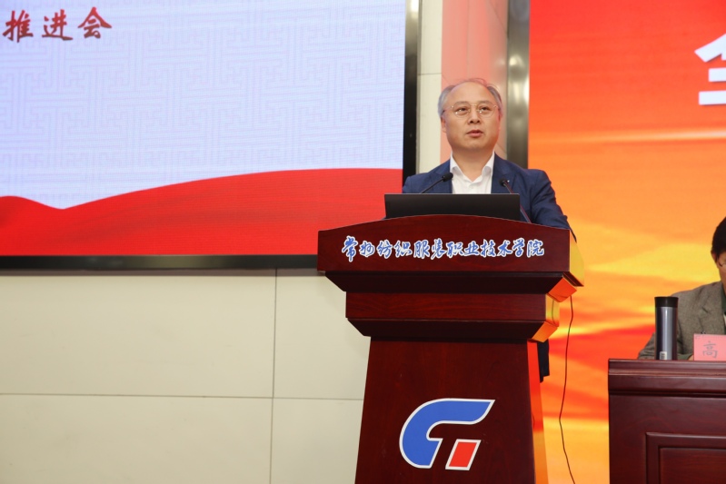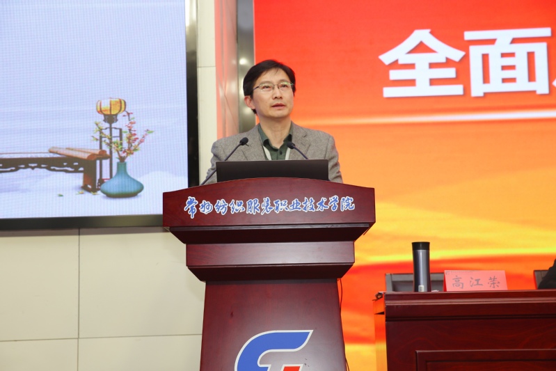 党委书记吴访升在会上作了题为《加强政治建设,抓实立德树人成效;推进政治巡察,夯实提质培优基础》的讲话。讲话内容分为三个部分:一是加强党的政治建设,抓实立德树人根本任务。他要求全体党员干部把准政治方向,坚定政治信仰;加强政治领导,强化政治责任;提高政治能力,增强办学水平;净化政治生态,涵养政治文化,并宣读了《党委领导班子作风》,做出了九条承诺。二是严格推进政治巡察,夯实提质培优基础。他要求党员干部提高政治站位,准确把握巡察监督的新要求;坚持问题导向,提升巡察监督工作实效;强化责任担当,依规依纪开展巡察工作。三是传承办学特色优势,绘就常纺美丽画卷。他结合前期开展的校内外调研、座谈会、行业企业专家访谈中发现的学校发展亟待解决的问题和难题,提出了构建家校企命运共同体的思考:一是对接高端,顺应两业融合,增强契合度;二是对接一流,深化产教融合,提升融合度;三是对接战略,强化科教融合,提升贡献度;四是对接趋势,创新艺教融合,提升美誉度;五是对接国际,加强政教融合,扩大开放度。面对新挑战新机遇下学校发展,吴访升提出三点要求:一是做到准确识变,二是做到科学应变,三是做到主动求变。