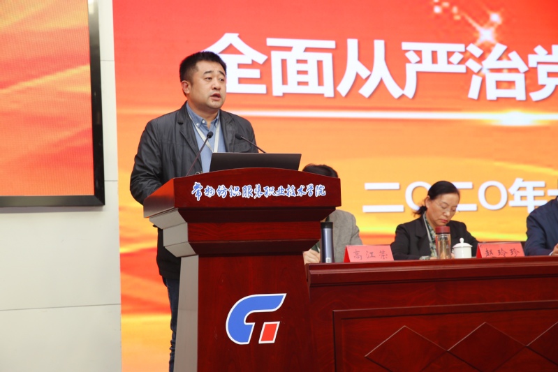 会上,组织部长高江荣作了《加强党的政治建设》专题报告。洪霄院长宣读了《关于第三轮校内巡察工作巡察组组长等授权通知》。经贸学院党总支书记胡艳妹作加强党的政治建设表态发言。服装学院党总支书记王剑作接受党委第三轮巡察工作表态发言。