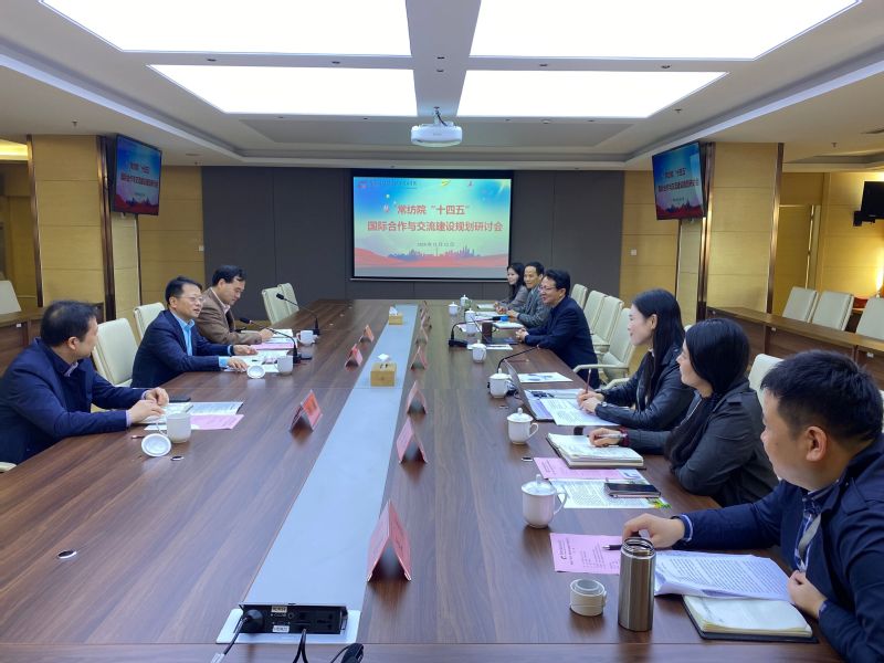 11月12日,常州市人民政府外事办公室副主任司马双龙、涉外管理处处长张国俊、港澳与友协事务处处长谢巍一行来永利官网指导国际合作与交流工作。学校院长洪霄、副院长赵玲珍热情接待了来访一行,国际学院、科技处、人事处等部门负责人以及国际学院全体人员参加了此次会议,会议由国际学院院长、外事办公室主任顾剑柳主持。