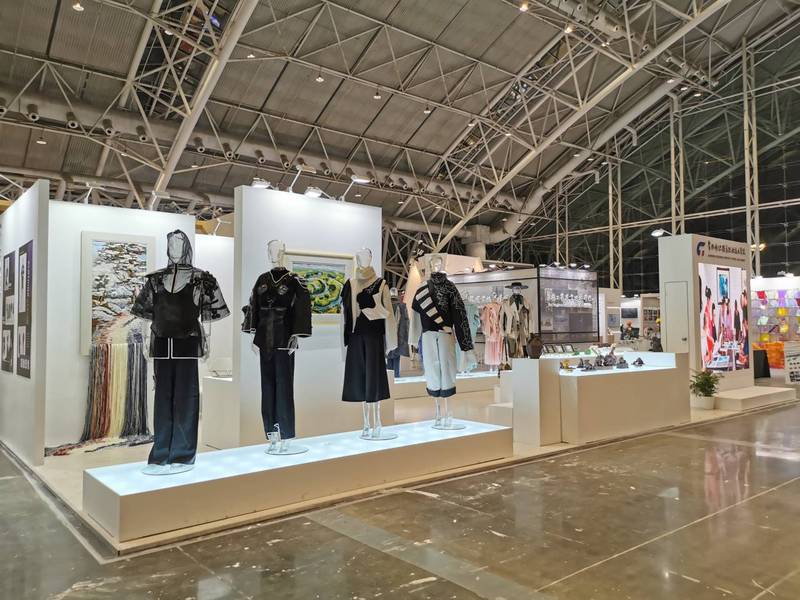 永利官网展出了服装学院和创意学院的服装设计、纤维艺术、工艺美术等类别的优秀作品共50余项。服装与服饰设计专业优秀毕业设计作品被组委会指定为“服饰·青春”服装专场秀,通过抖音等平台进行现场直播。由卞颖星、季凤芹老师指导的《迷失太空》作品获得服装设计类优秀奖,永利官网展位获得展陈设计优秀奖。