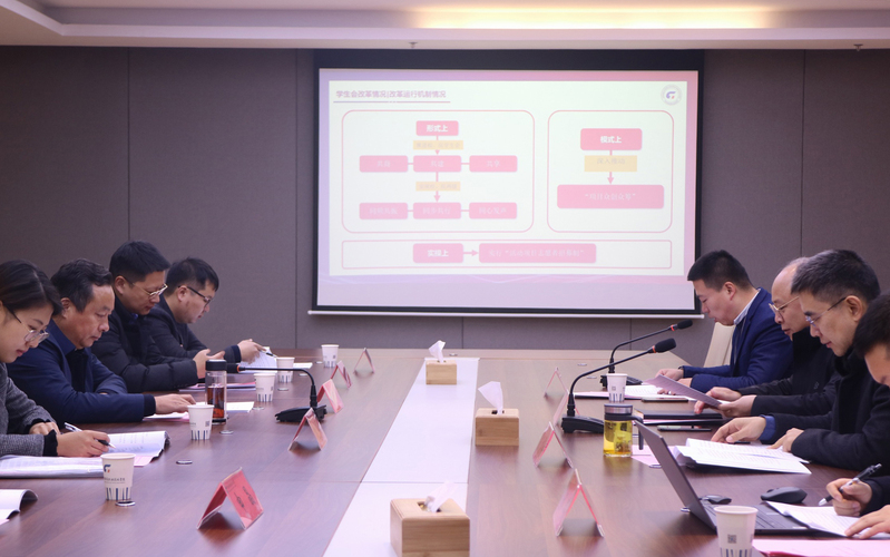 李凯向工作组从落实党委全面领导、加强团委具体指导、明确职能定位、改革运行机制、坚持精简原则、明确遴选条件、严格遴选程序、规范召开代表大会、坚持从严治会、建立述职评议制度、创新工作机制、加强作风建设等方面汇报了永利官网学生会改革的基本情况,并阐述了下一步工作方向。