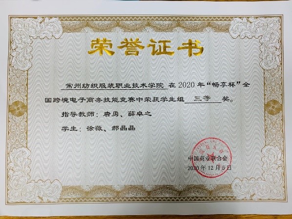 跨境电子商务是拉动经济增长的新通道,是融入国家“双循环”格局的重要动力,为了加快提升跨境电子商务人才培养水平,提升行业整体素质和技术技能水平,做好“跨境电子商务人才新基建”,由中国商业联合会主办的2020年“畅享杯”全国跨境电子商务师生技能大赛于12月5日在海南省海口市举行,我院派出师生代表队参加。