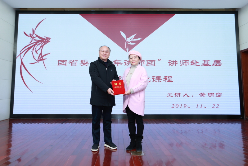 报告会上,党委书记吴访升教授代表学校向黄明彦馆长颁发了客座教授聘书。全校干部、教师参加了报告会,报告会由校党委委员、宣传部长夏斌主持。