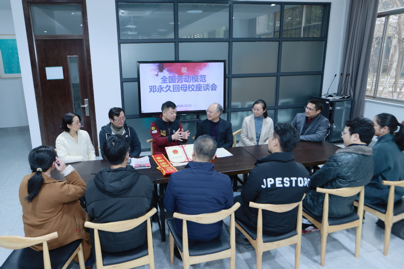 工作室启动仪式后,一场别开生面的校友座谈会在祥和的气氛中展开。邓永久谈到,实现宏伟蓝图,归根到底要靠劳动创造,大力弘扬劳模精神、劳动精神、工匠精神就要以身作则,说实话、办实事、出实效。在母校成立的劳模创新工作室,一方面旨在传承工匠精神和劳模精神,另一方面重在创新,新时代呼唤创新精神,希望工作室能为母校培养高素质技术技能人才搭建一个锐意创新、砺行致远的阵地。
