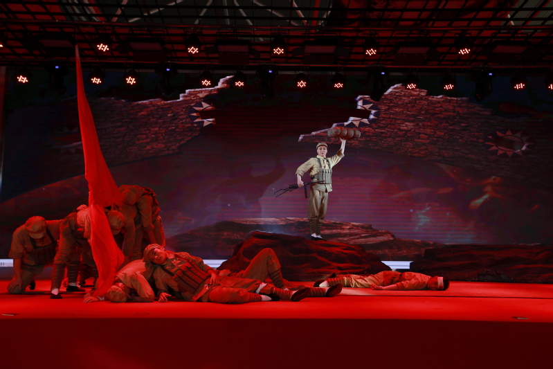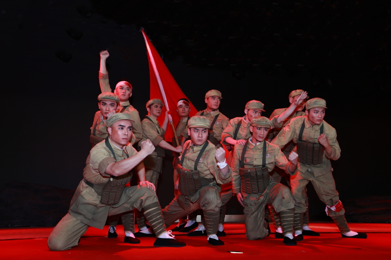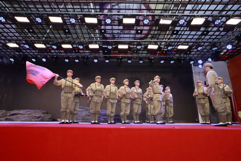剧目以章节形式展现,截取了董存瑞参军、获得战斗勋章、炸碉堡等重点事件,展示英雄人物经战火洗礼不断成长的历程,真实地再现了董存瑞的光辉事迹和爱国主义情怀。台上,战士董存瑞年轻的生命随着碉堡的灰飞烟灭而得以升华,而他如雕塑般挺立的身姿也成为了烙印在人们心中的一座丰碑。台下,同样年轻的学子们凝视着,聆听着,思索着——以青春致敬青春,以信仰回应信仰。这样一场以戏曲为载体的艺术盛宴,将在场的同学们带入了那个战火纷飞但却热血沸腾、勇往直前的年代,亲身感受了一曲撼动人心的英雄赞歌。