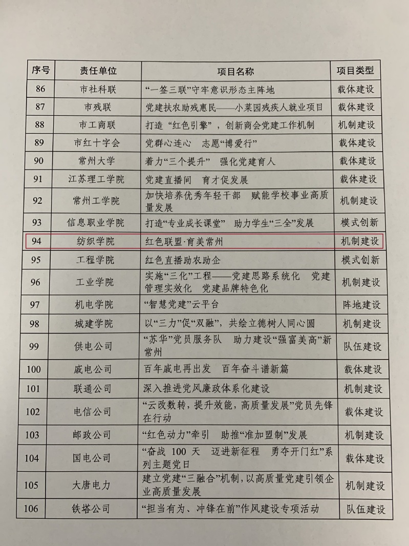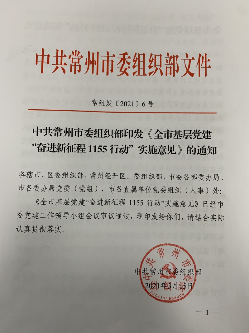 近日,中共常州市委组织部印发《全市基层党建“奋进新征程1155行动”实施意见》的通知(常组发〔2021〕6号),永利官网人文学院党总支申报的《红色联盟育美常州》获常州市基层党建重点项目立项。