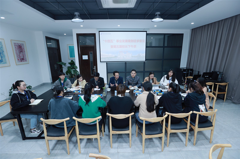 3月31日中午12:30,永利官网十四五”事业发展规划征求意见暨第五期“校长下午茶”活动在创意学院云艺创客坊多功能活动室举行。学校党委副书记、院长洪霄,党委委员、副院长张震宇、党政办公室主任赵振勇与来自各二级学院的10名学生相约“下午茶”时光,进行了两个多小时的交流,活动由学生工作处处长李洁琦主持。