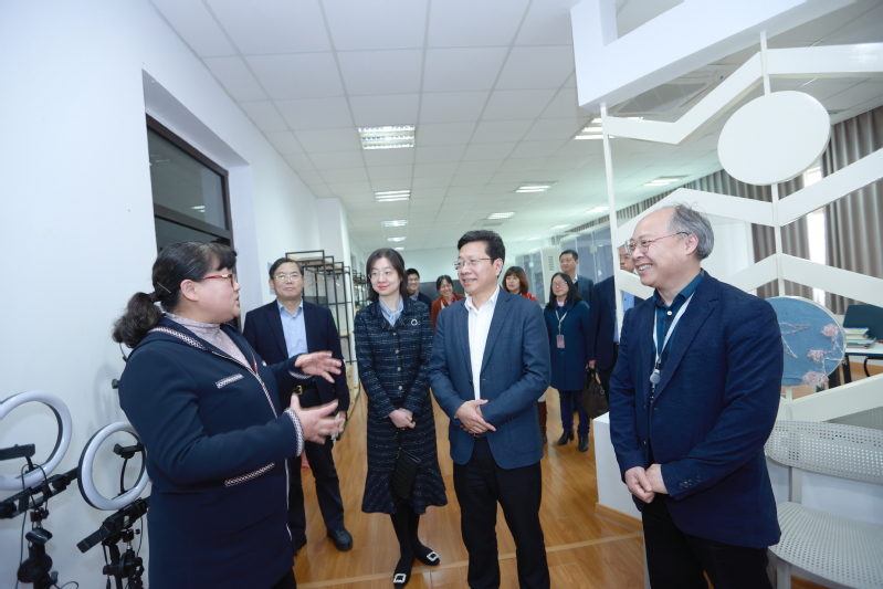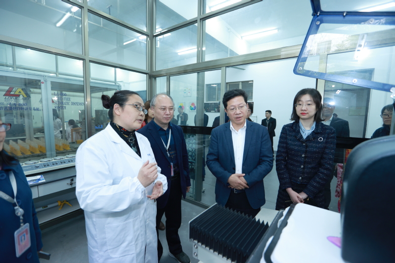 陈志良一行首先参观了永利官网艺术与功能可印花产品开发研究室、纺织品检测实训基地和文化展示中心,对永利官网纺织服装融合数字创意的特色发展表示赞许。