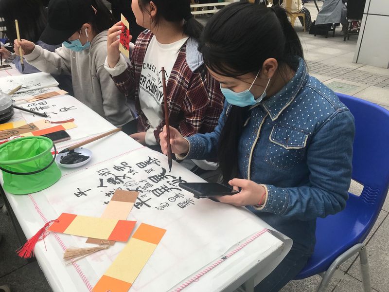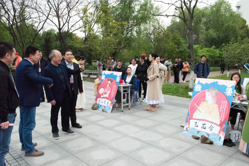 仪式结束后,现场观众观看了由各学生社团带来的精彩文艺演出。武术社、舞蹈团联合表演的《“武”(舞)林》刚柔并济,呈现出力量与温柔的碰撞;人文学院带来的《棠梨煎雪》一曲点燃了春天的气息;国学社《春日宴》汉服走秀让大家充分感受到中国传统服饰之美;舞蹈团带来的古典舞《陌上花开》和《清平乐》给人以美的体验;墨缘书法社的现场书法作品《高山流水》显示出浓厚的文化气息。活动现场设有“剪子包袱锤”、“文人墨客”、“击壤”、“三智五猜”、“飞花令”等多种类型的传统雅集,引导鼓励学生学习传统文化,绿色营销社、影像力、化妆社、蓝领巾志愿服务队等社团结合社团特色和专业,在现场设置了汉服租赁、美妆、写真、发饰等为一体的“一日汉服产业链”,所有“同袍”都可穿上租来的汉服,相互行礼问候,化妆拍照留念。通过情境体验的模式,让学生充分感受到中国传统服饰之美,激发学生对祖国传统文化的热爱。
